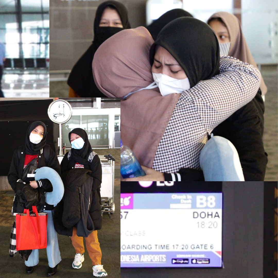 Kami menggunakan maskapai Qatar Airways dari Terminal 3 Bandara Internasional Soekarno-Hatta Tangerang, transit di Doha dan lalu lanjut ke Bandara Internasional Charles de Gaulle, Paris.