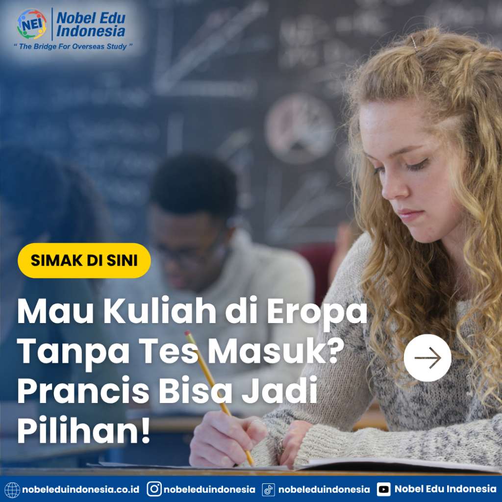 Jika kamu ingin mendapatkan bantuan persiapan dokumen, bimbingan pendaftaran, atau konsultasi gratis soal peluang kuliah di Eropa tanpa tes masuk, terutama di Prancis, jangan ragu untuk hubungi konsultan pendidikan terpercaya seperti Nobel Edu Indonesia. Kami siap bantu kamu wujudkan impian kuliahmu!